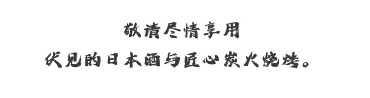 将腌渍于酒粕中的海鲜以炭火炙烤,称为伏见炙烧。其中,鲼鱼鳍(エイヒレ)因浸泡在酒粕中,柔嫩湿润、口感细致。与「生原酒TAREKUCHI」的搭配更是一绝,在品尝完酒的果香后,鲼鱼鳍带来清爽余韵,层次丰富、回味无穷。