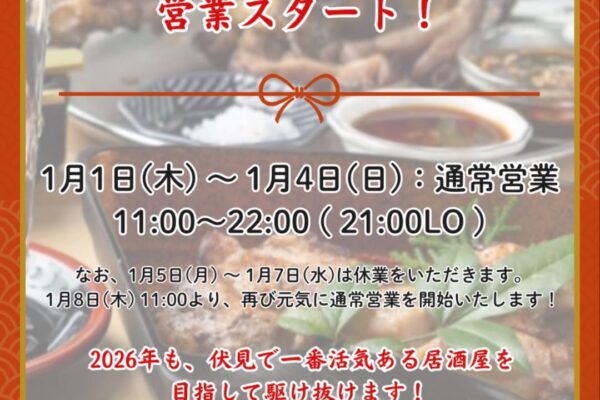 🎍 年末年始 営業時間のお知らせ 🎍 いつも伏水89丁目食堂 […]